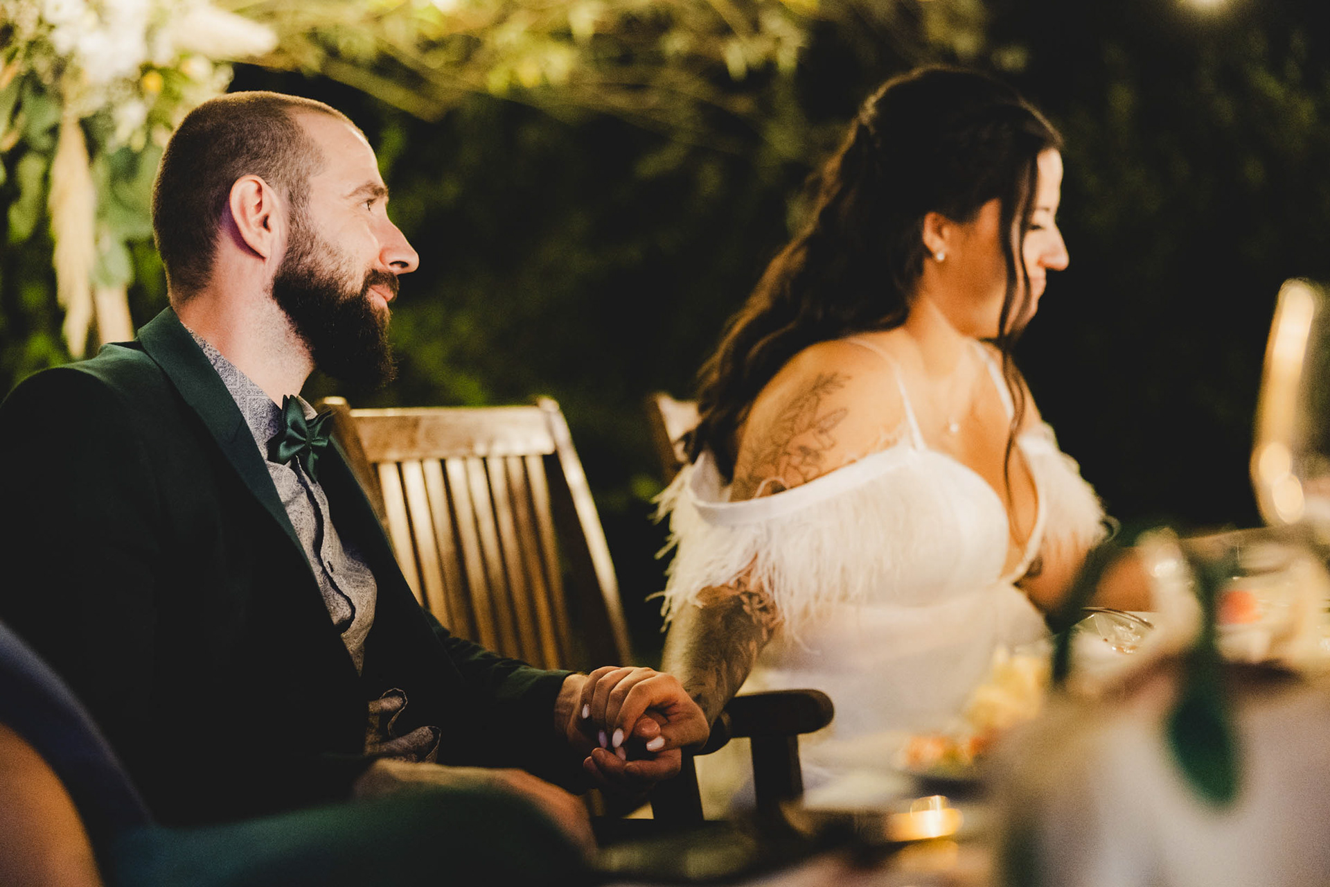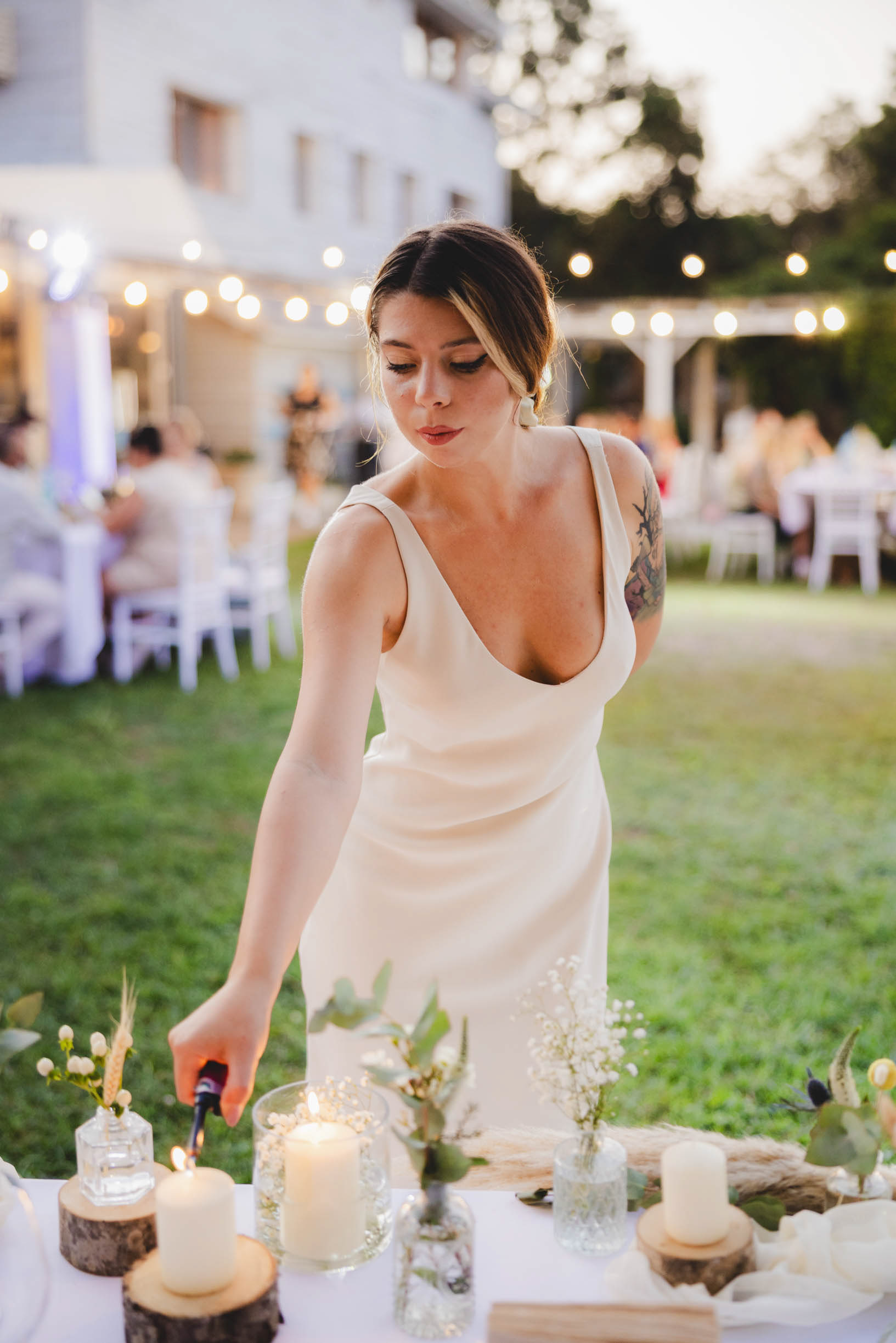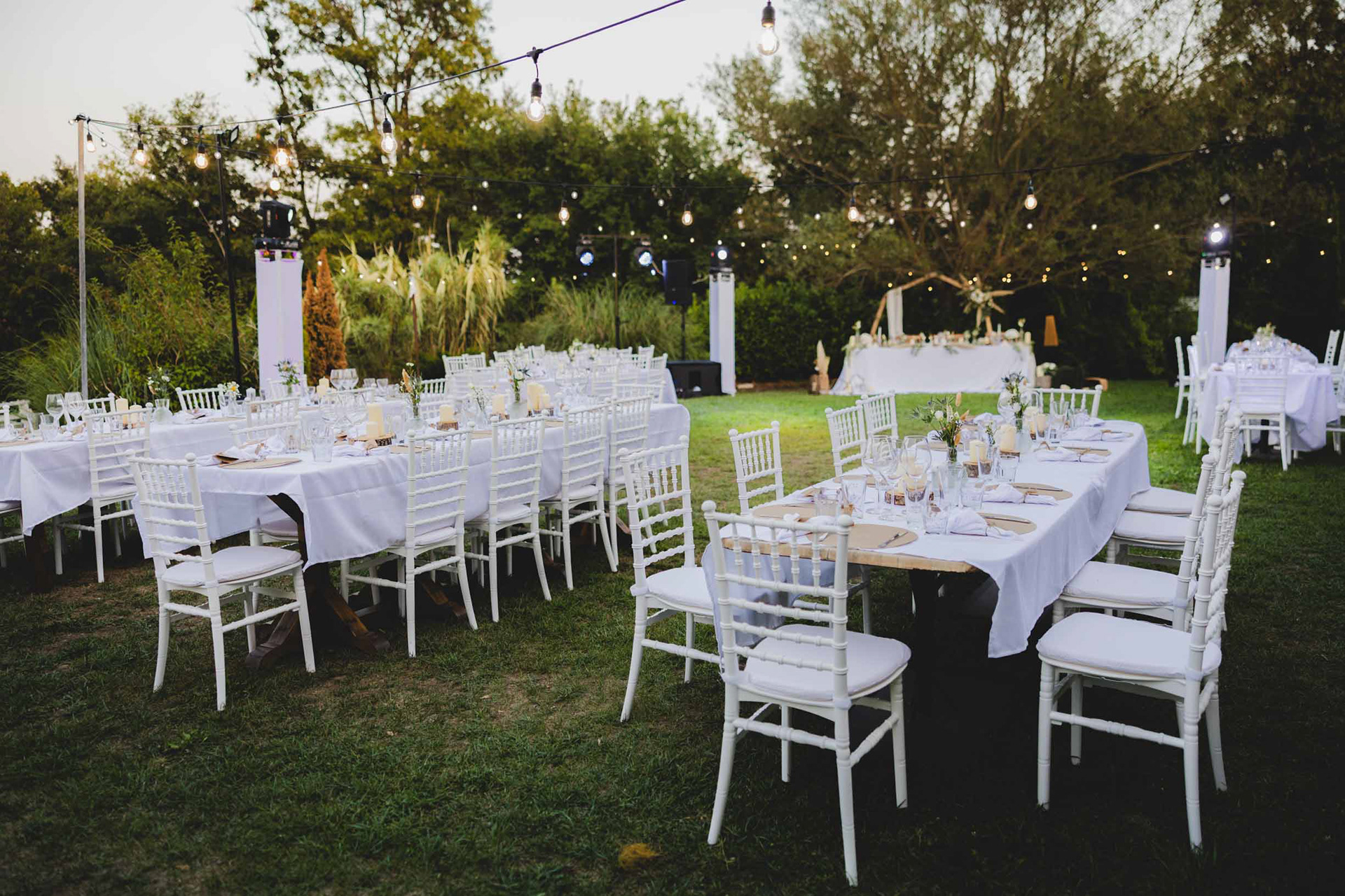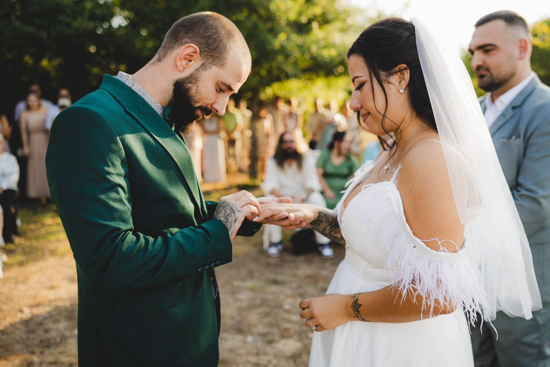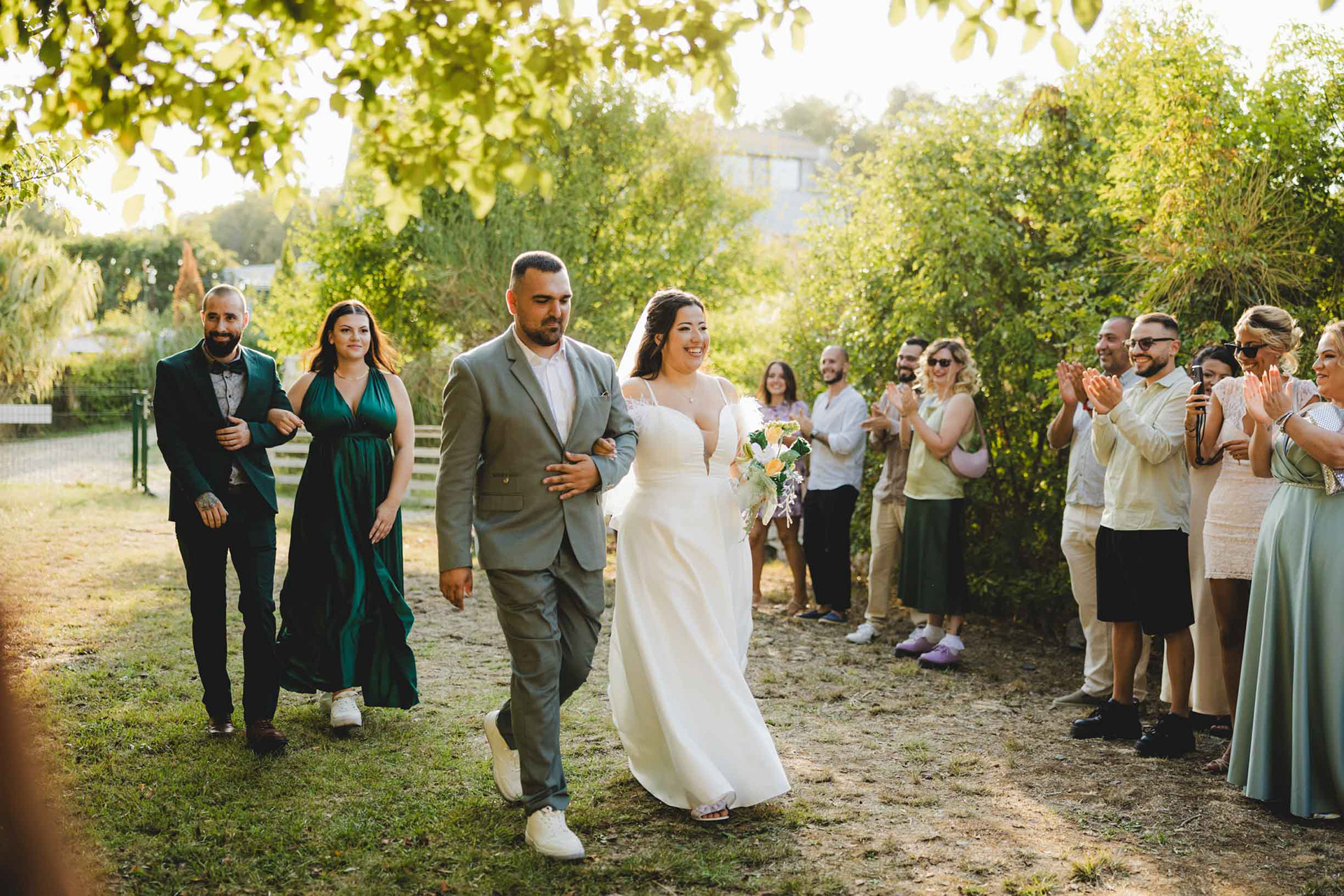 Сватбеният ритуал приключи и макар да ни се струваше, че целият ден е пред нас, залязващото слънце над парк Росенец ни напомни, че вечерята и сватбеното парти вече чукат на вратата.