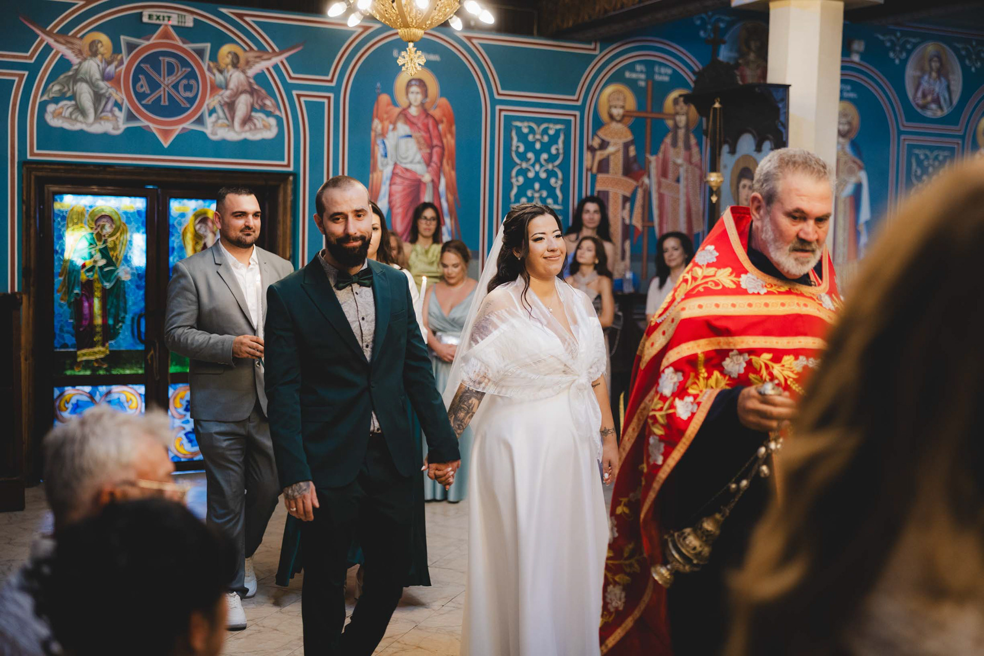 Сватбеният ден официално започна. Въпреки септемврийската жега в Бургас, всички се отправихме към храм „Свети Иван Рилски“. Там ни очакваше тържествената атмосфера на предстоящия църковен ритуал и вечният обет, а свещеника беше готов за празничният звън на камбаните, който да даде звучен старт на новия съвместен път за Росен и Анна-Мария.