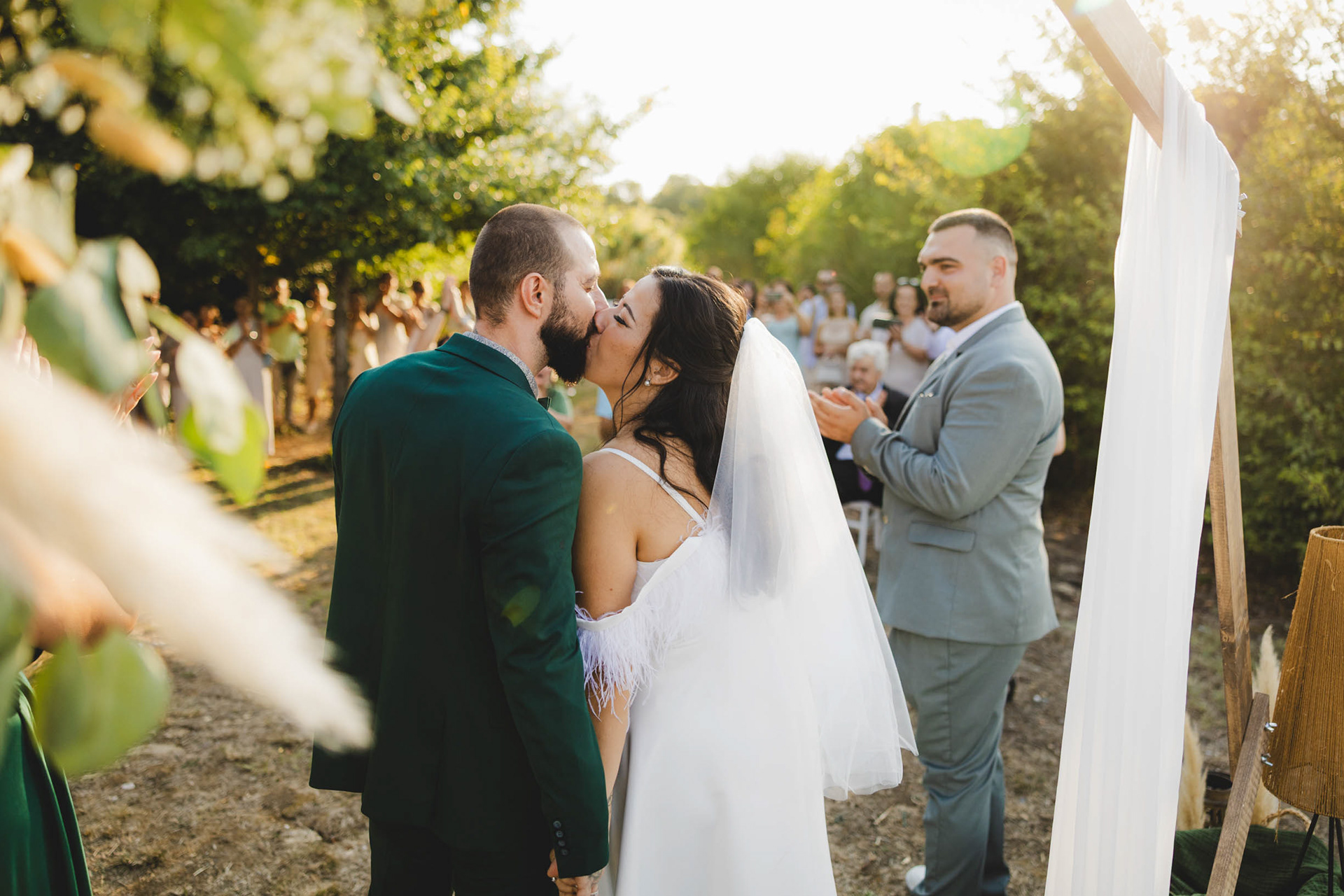 Първата целувка! Кулминацията на церемонията в парк Росенец (Отманли) под аплодисментите на най-близките.