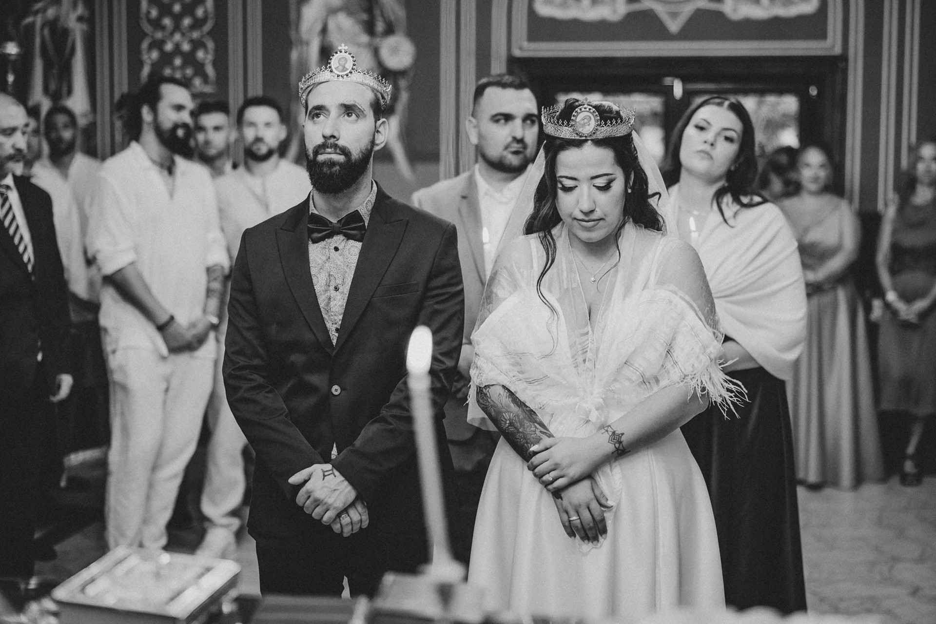 Поглед между младоженци в храм по време на ритуал в Бургас