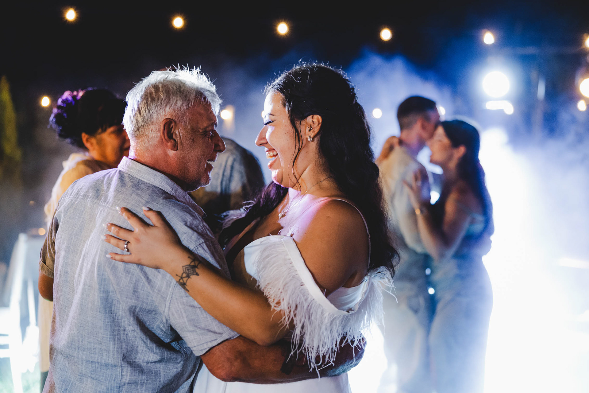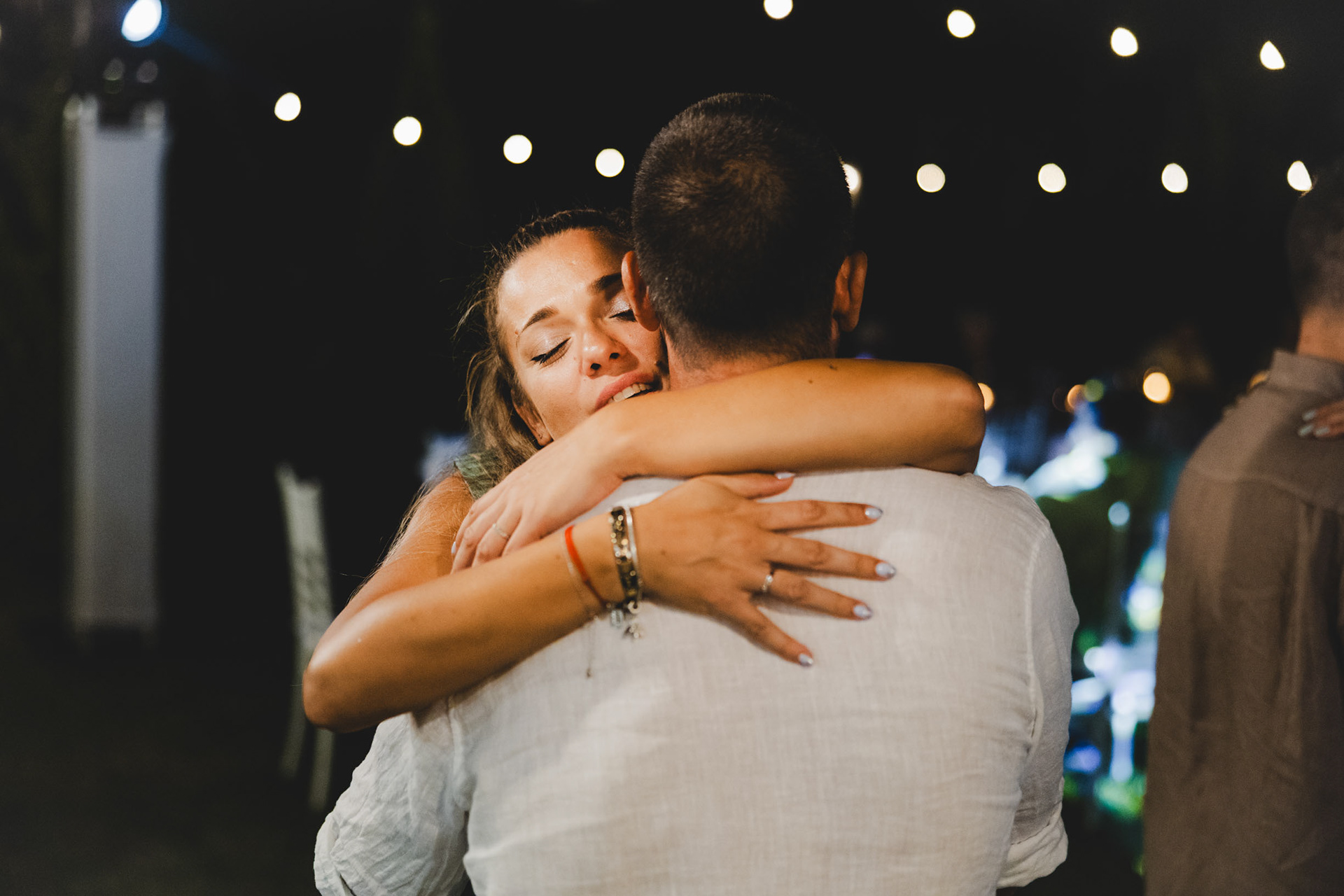 Искрена радост и прегръдка по време на сватбен купон край морето в Отманли.