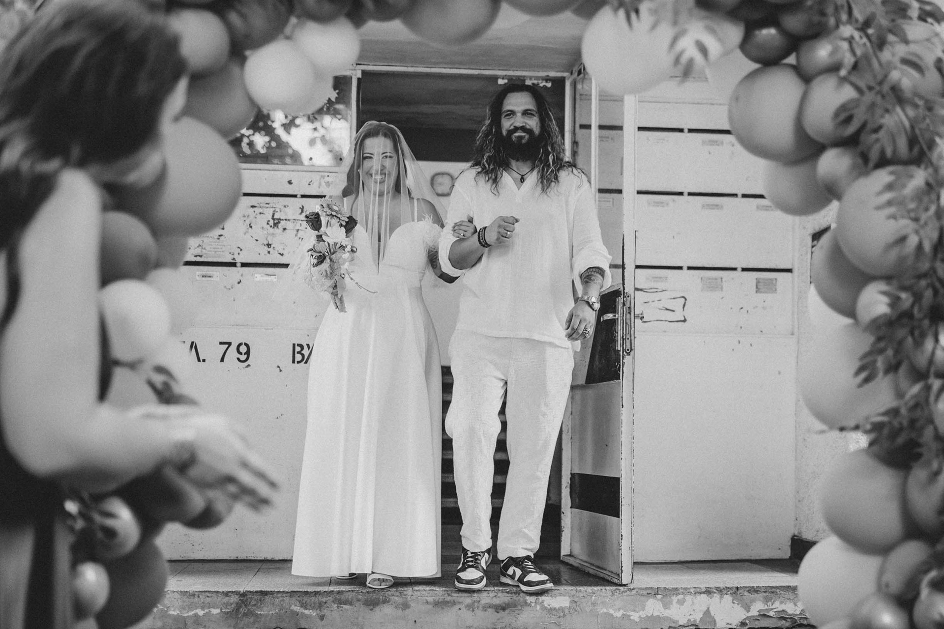 Булката купонясва - черно-бяла сватбена фотография