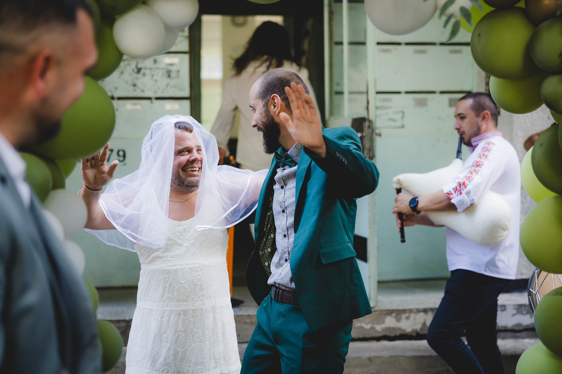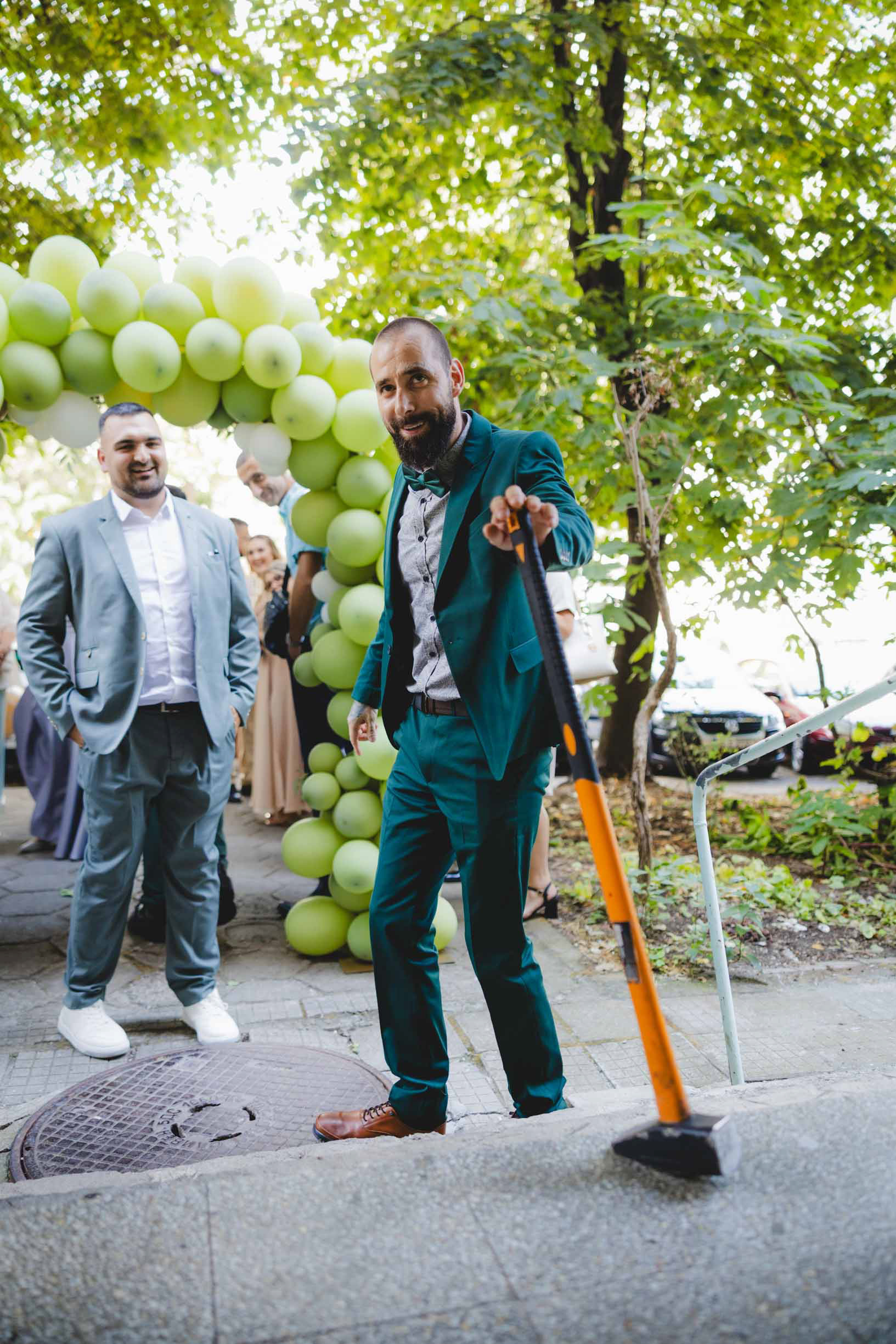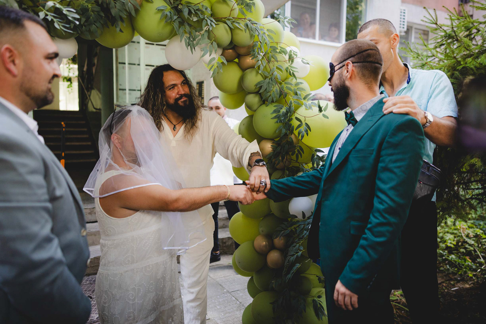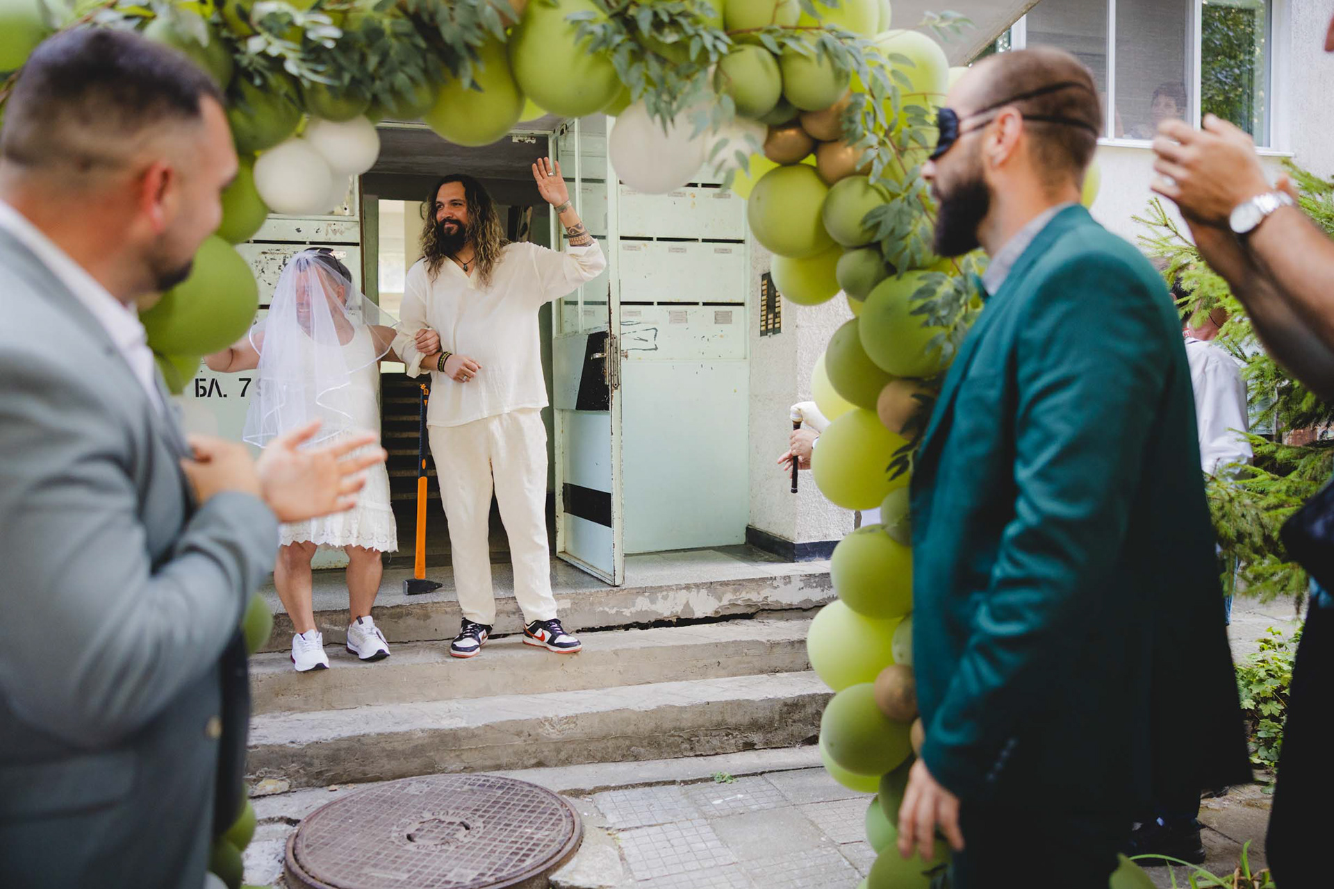 Традицията е спазена! Импровизирано сватбено хоро пред барбер студиото за настроение.