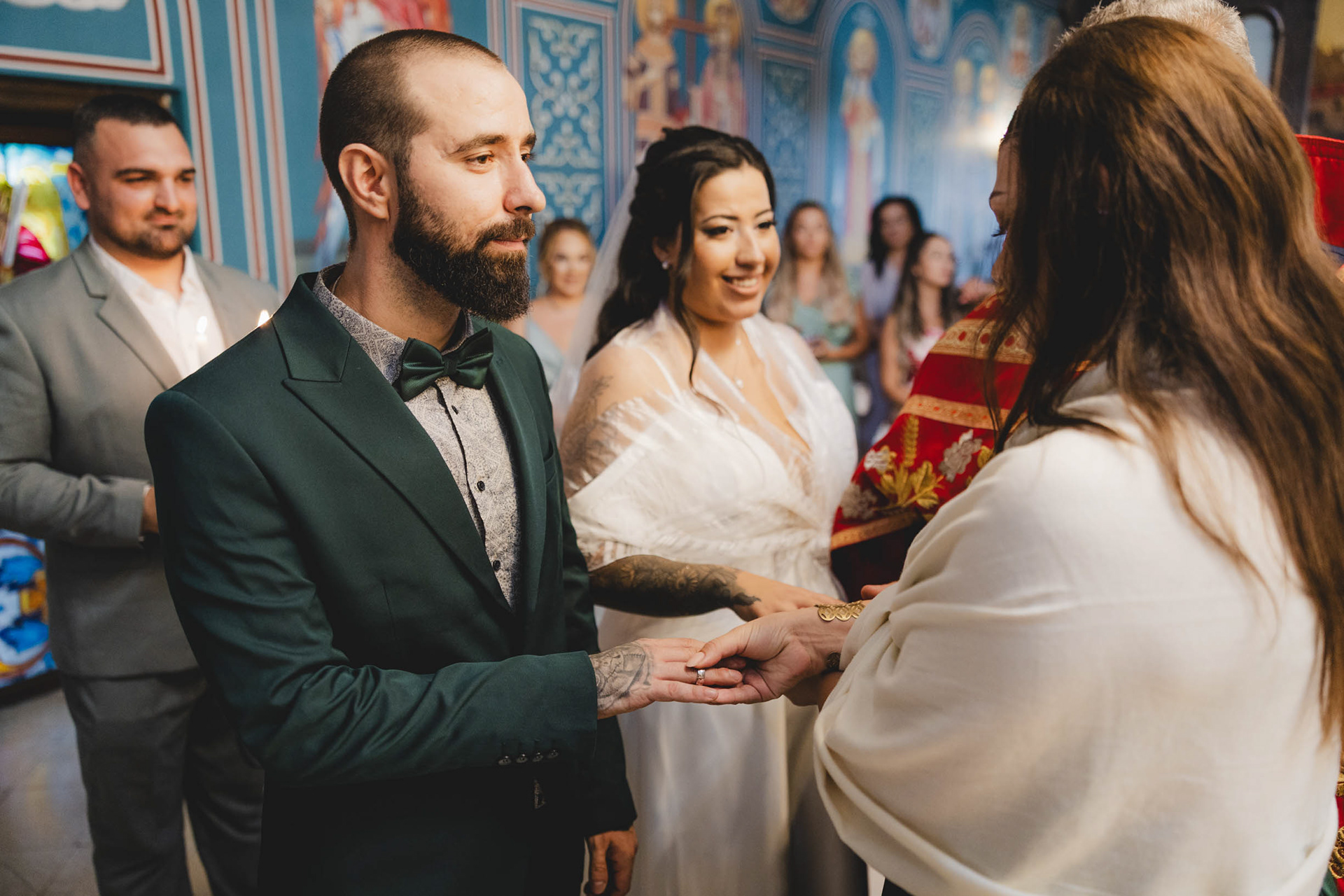 Поглед, изпълнен със сигурност и сълзи от щастие. Емоционален момент от венчавката в храм „Свети Иван Рилски“ – Бургас.