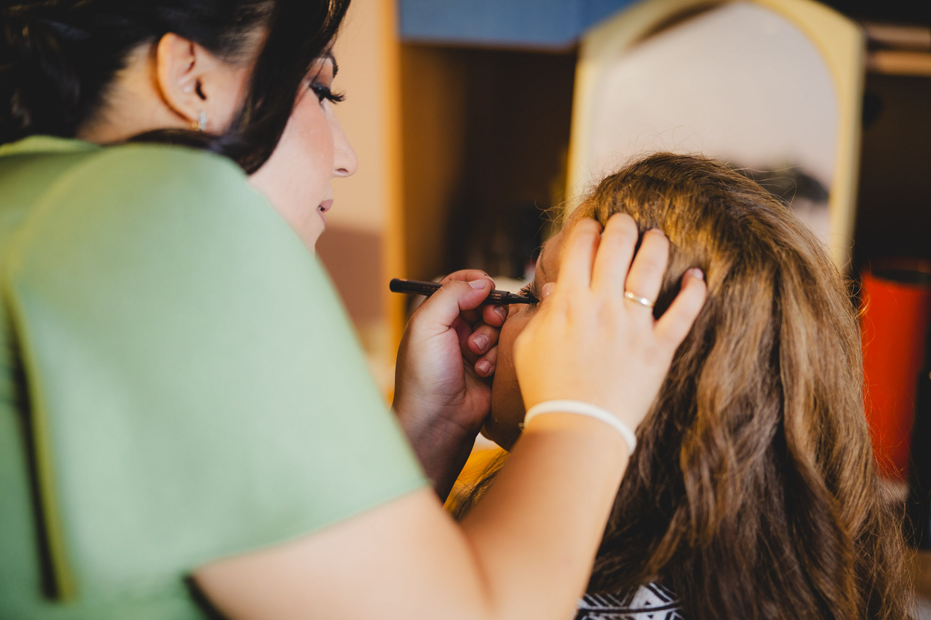 Междувременно, подготовката в дома на булката в Бургас беше към своя край. Всичко за сватбения ден беше напълно готово – от прелестната сватбена рокля до искрените сълзи от щастие, които само допринасяха за естествената визия. Като сватбен фотограф, за мен това са най-важните моменти. Всеки има близки кадри на токчетата и роклята, но не всеки получава истинската емоция.