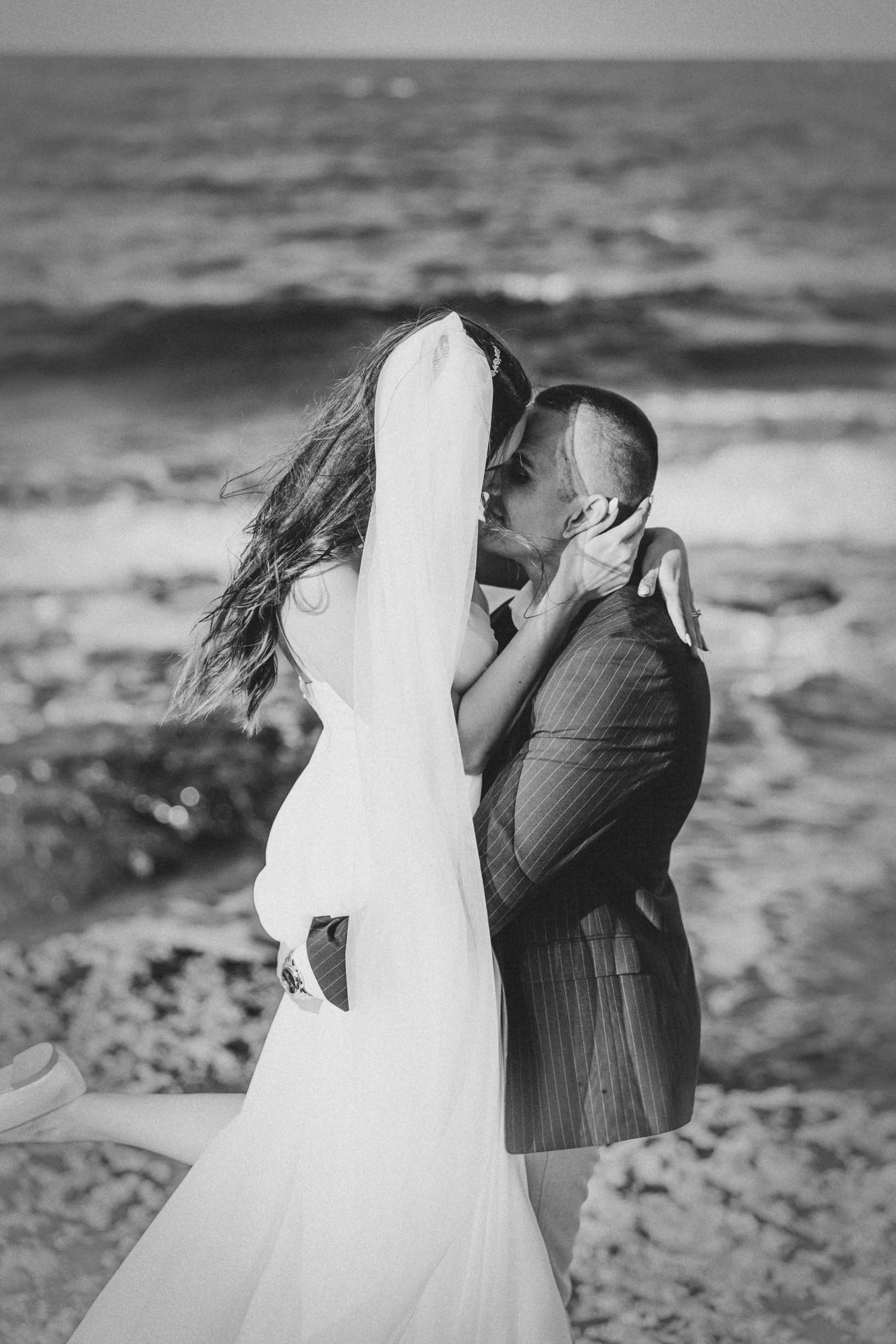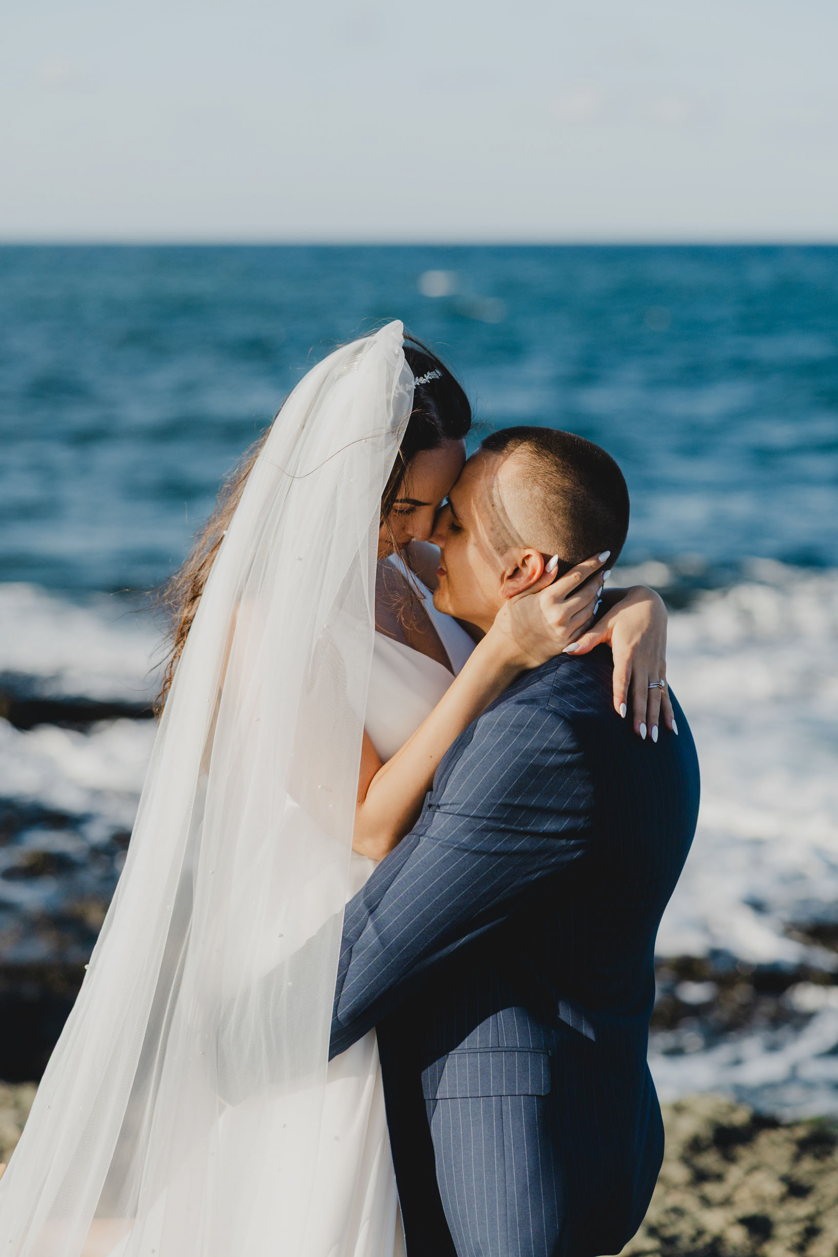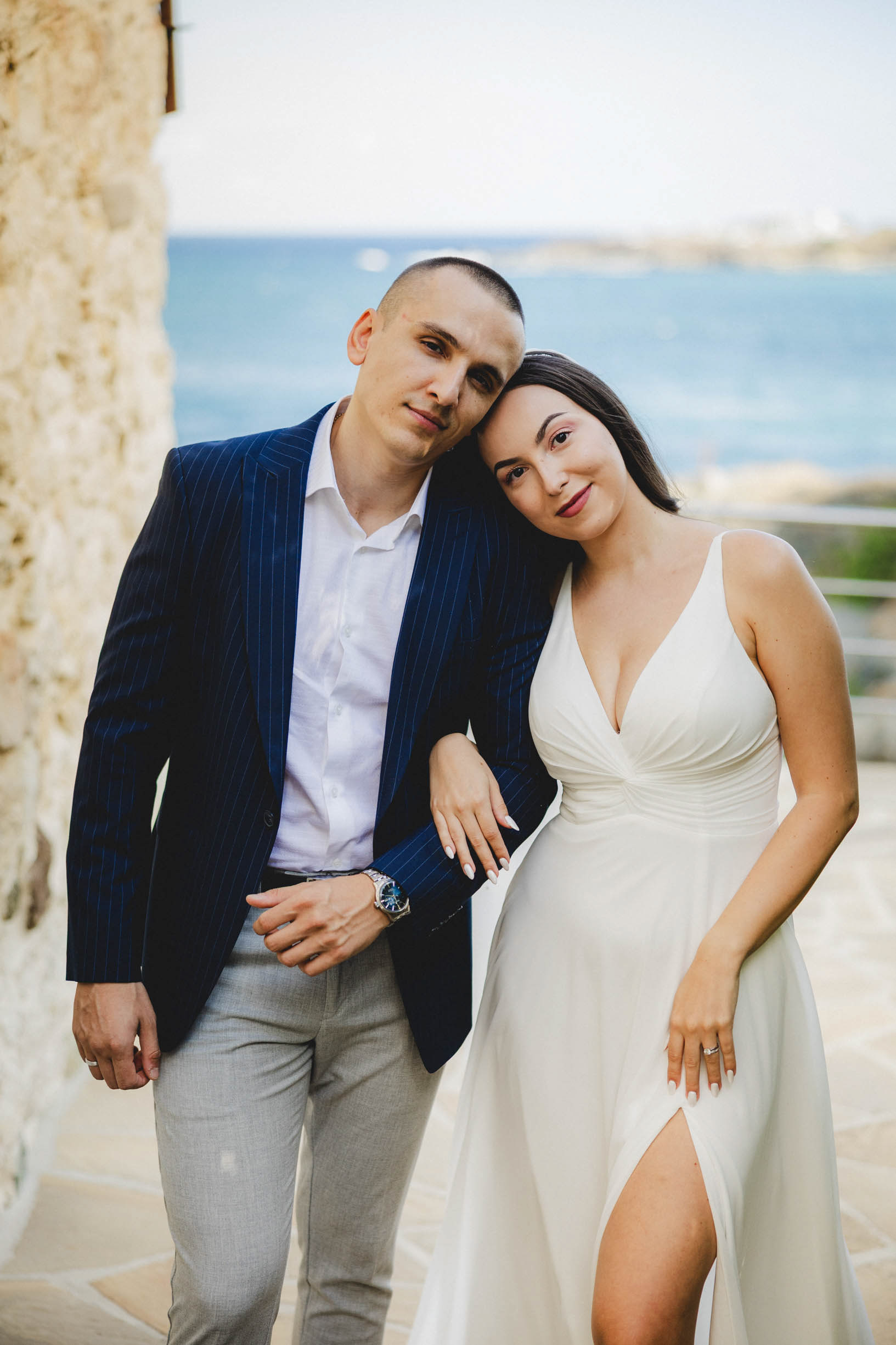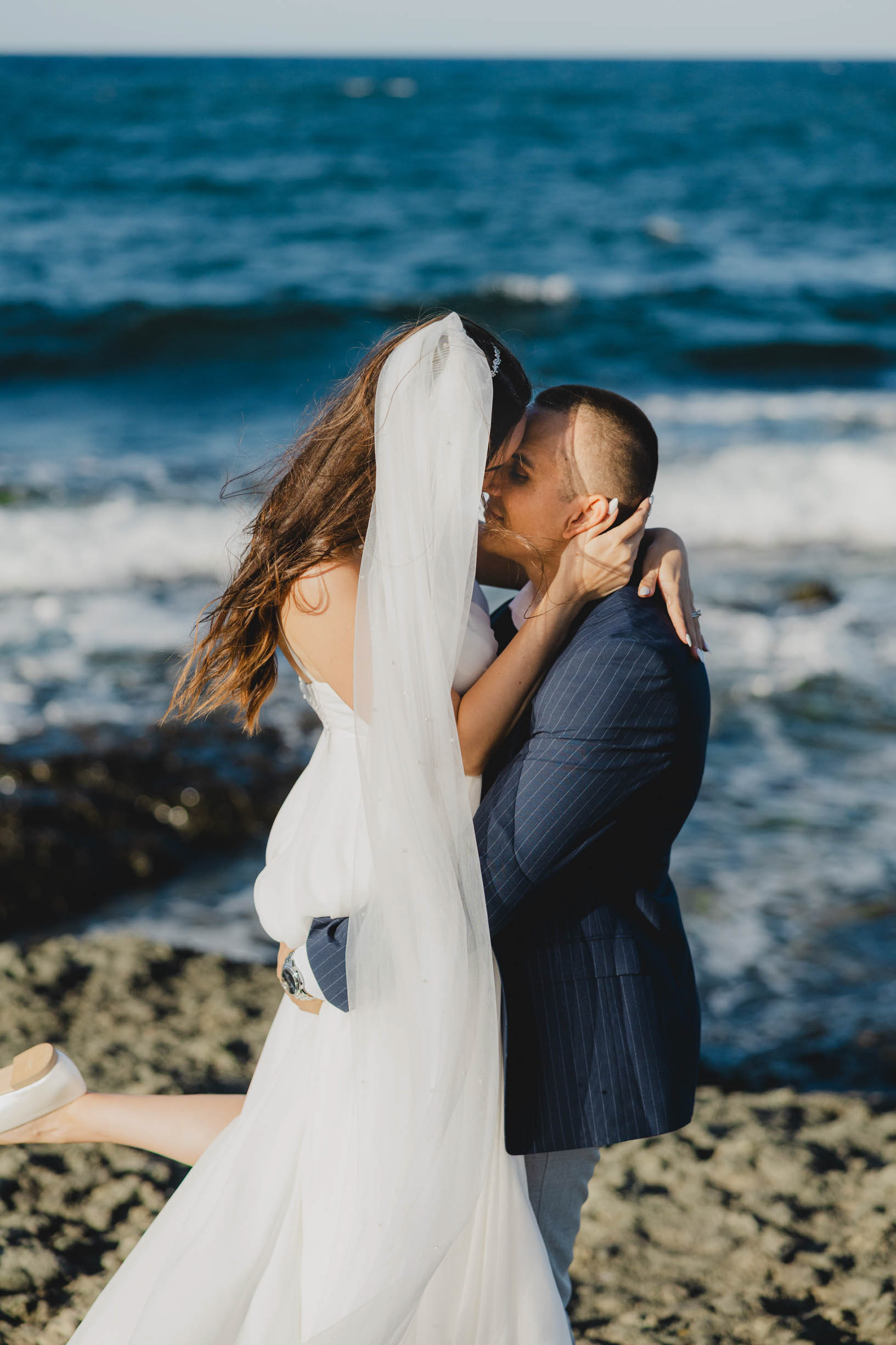 Вятър и море на скалите във Василико – един от най-красивите моменти от сватбената сесия в Царево