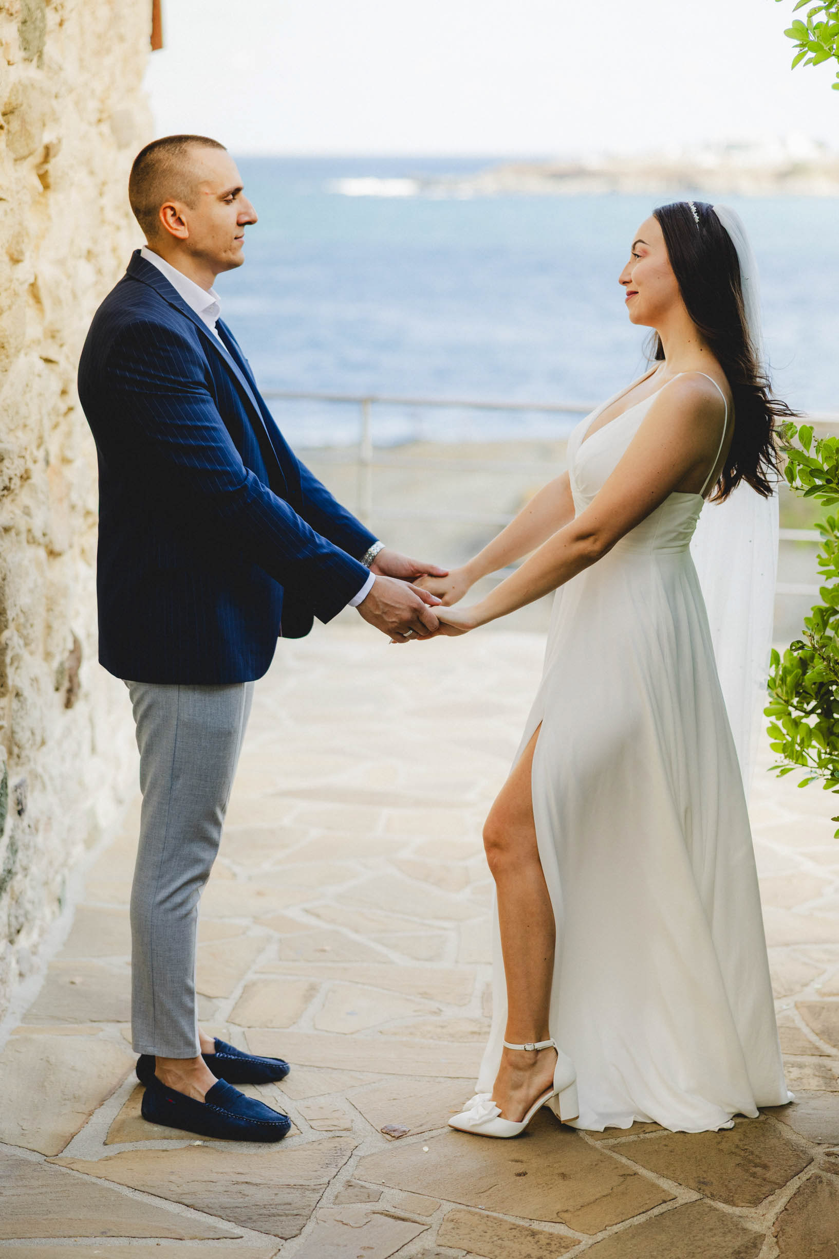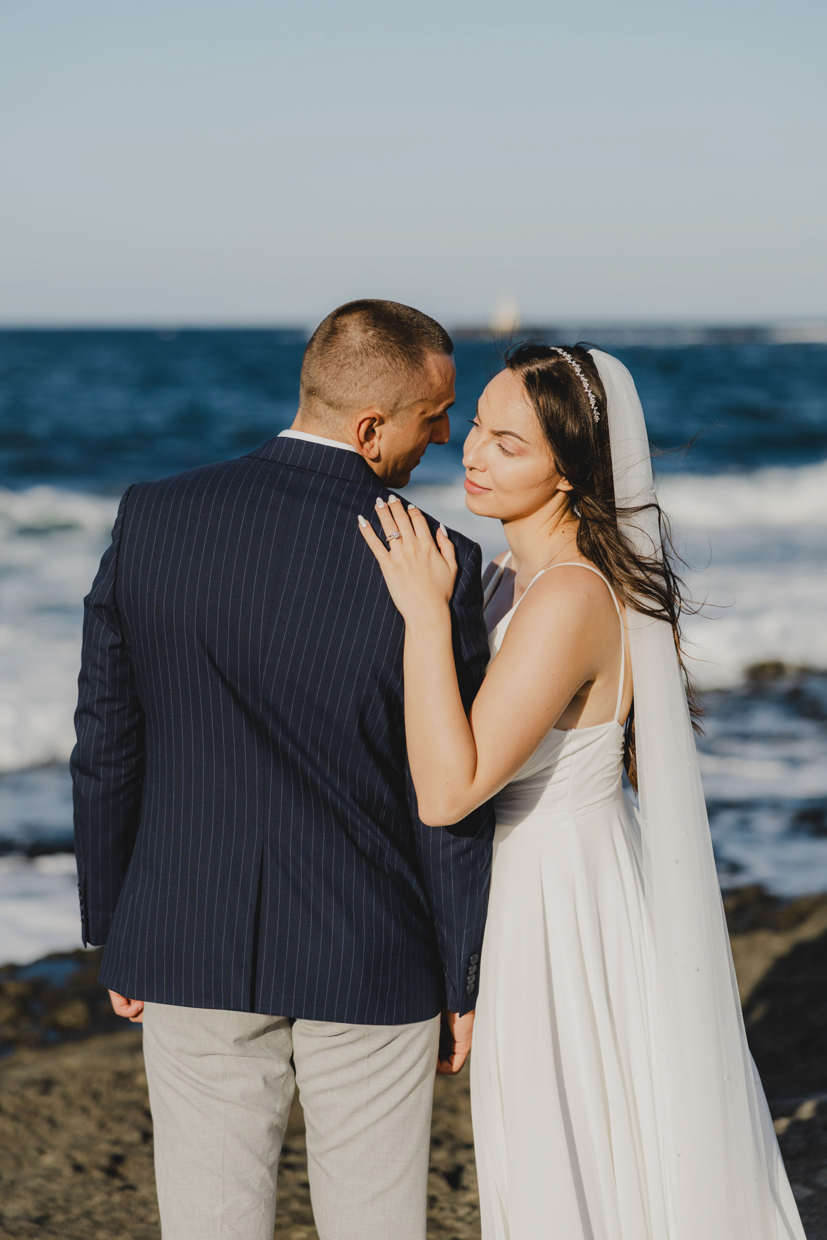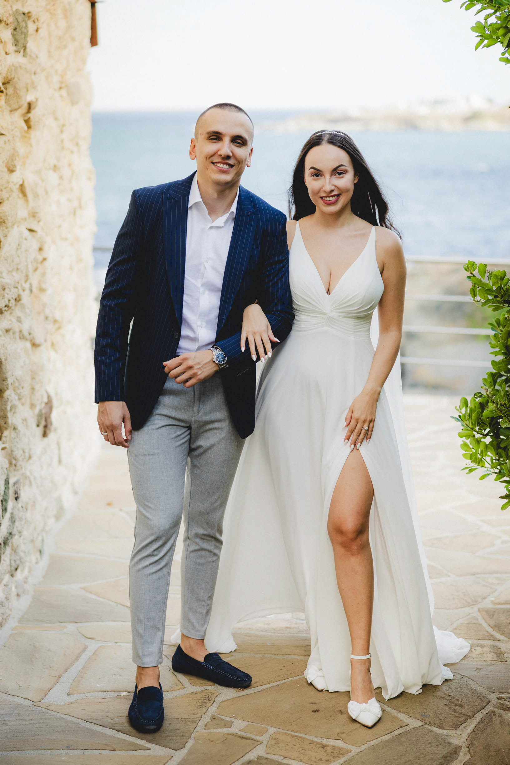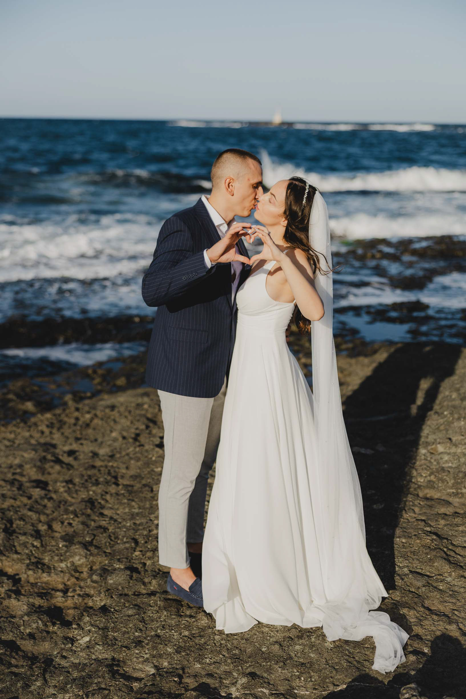 Вятър и море на скалите във Василико – един от най-красивите моменти от сватбената сесия в Царево