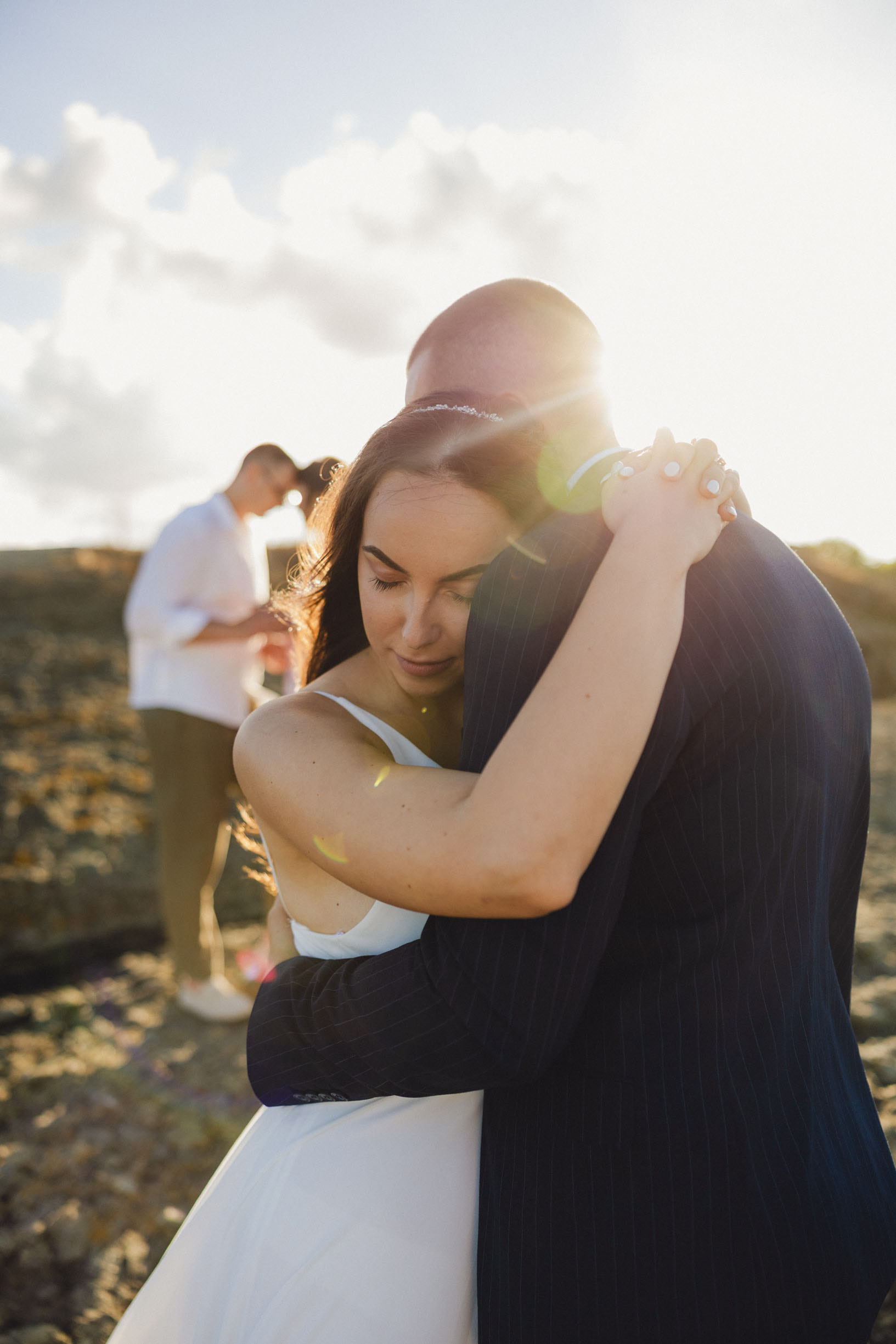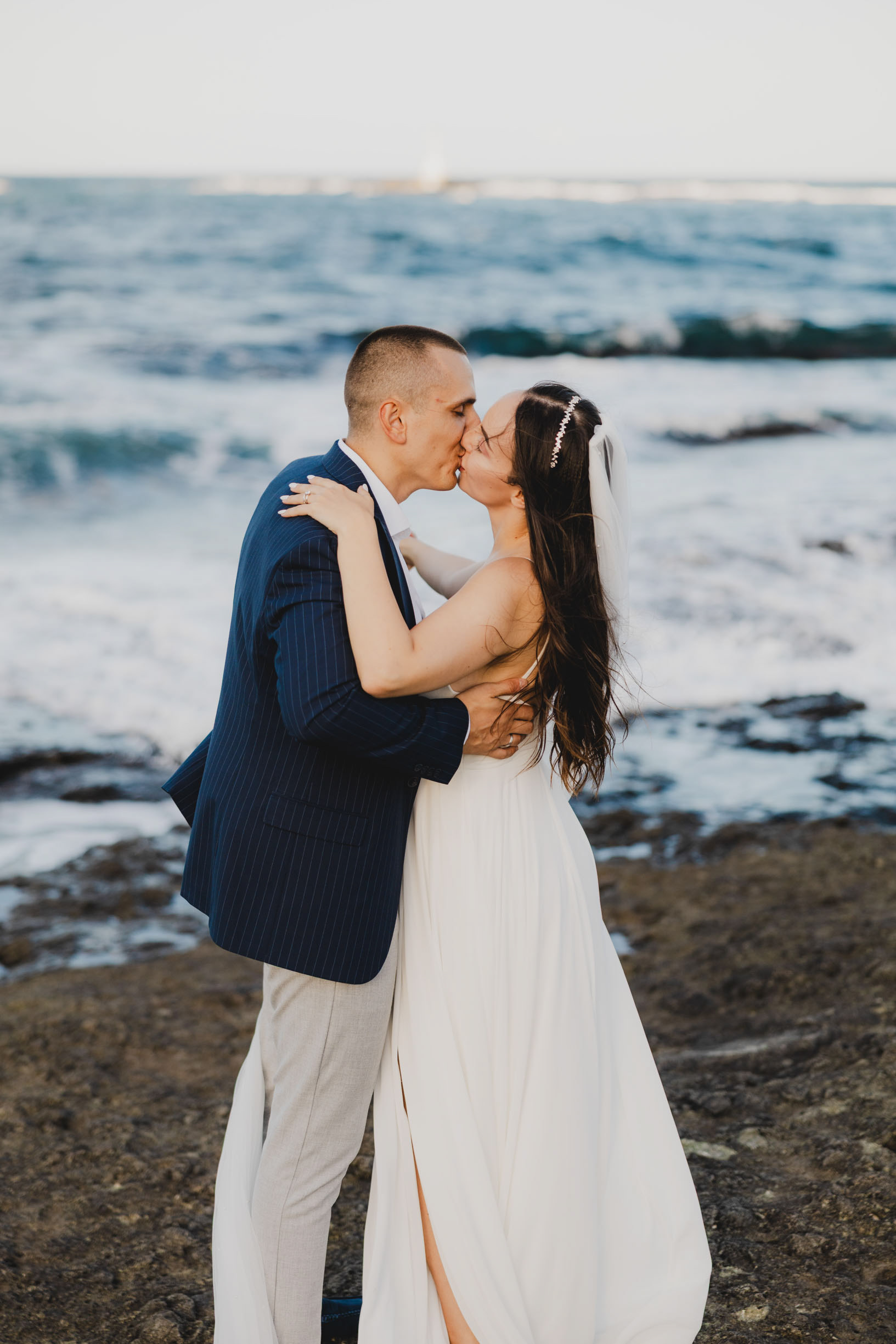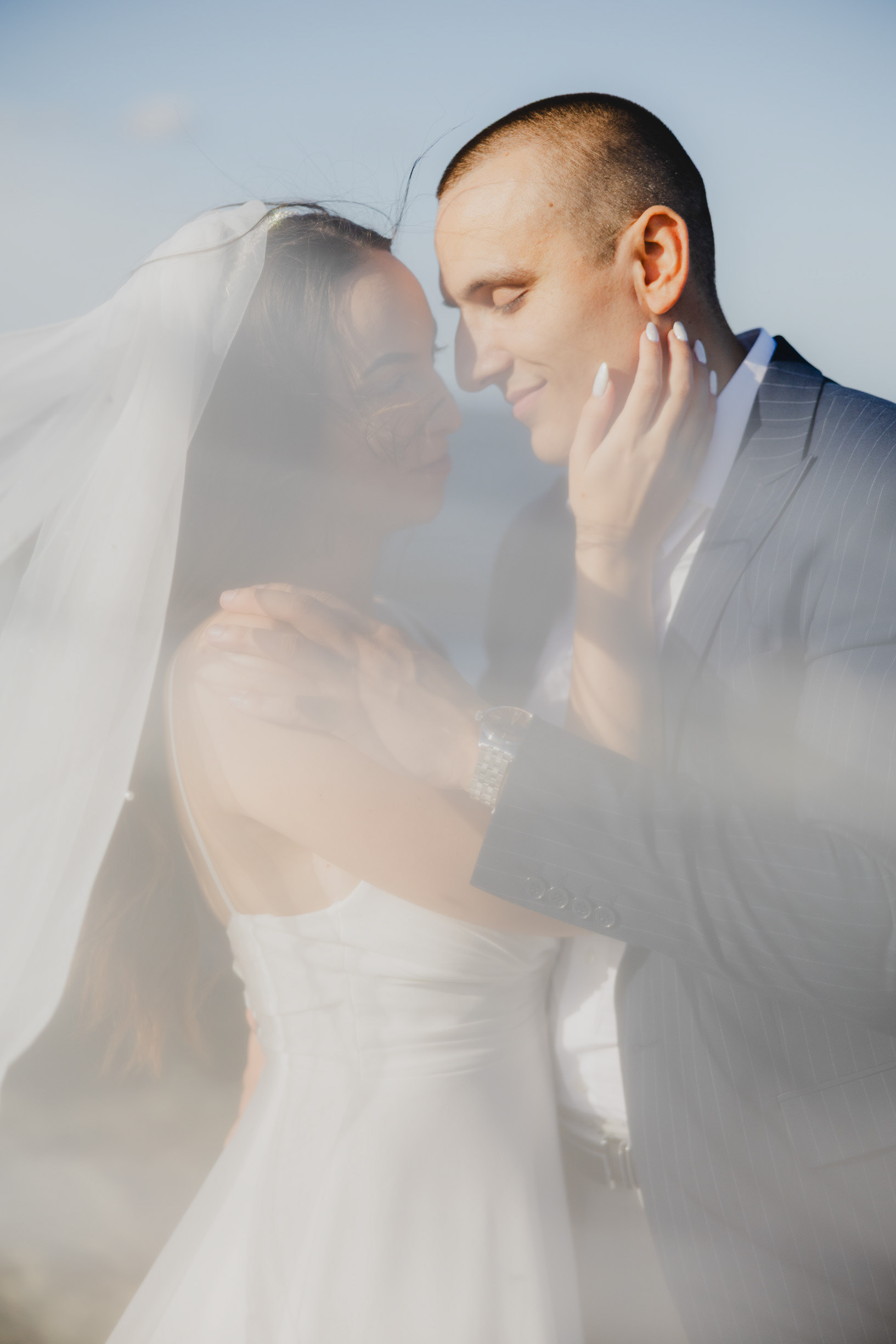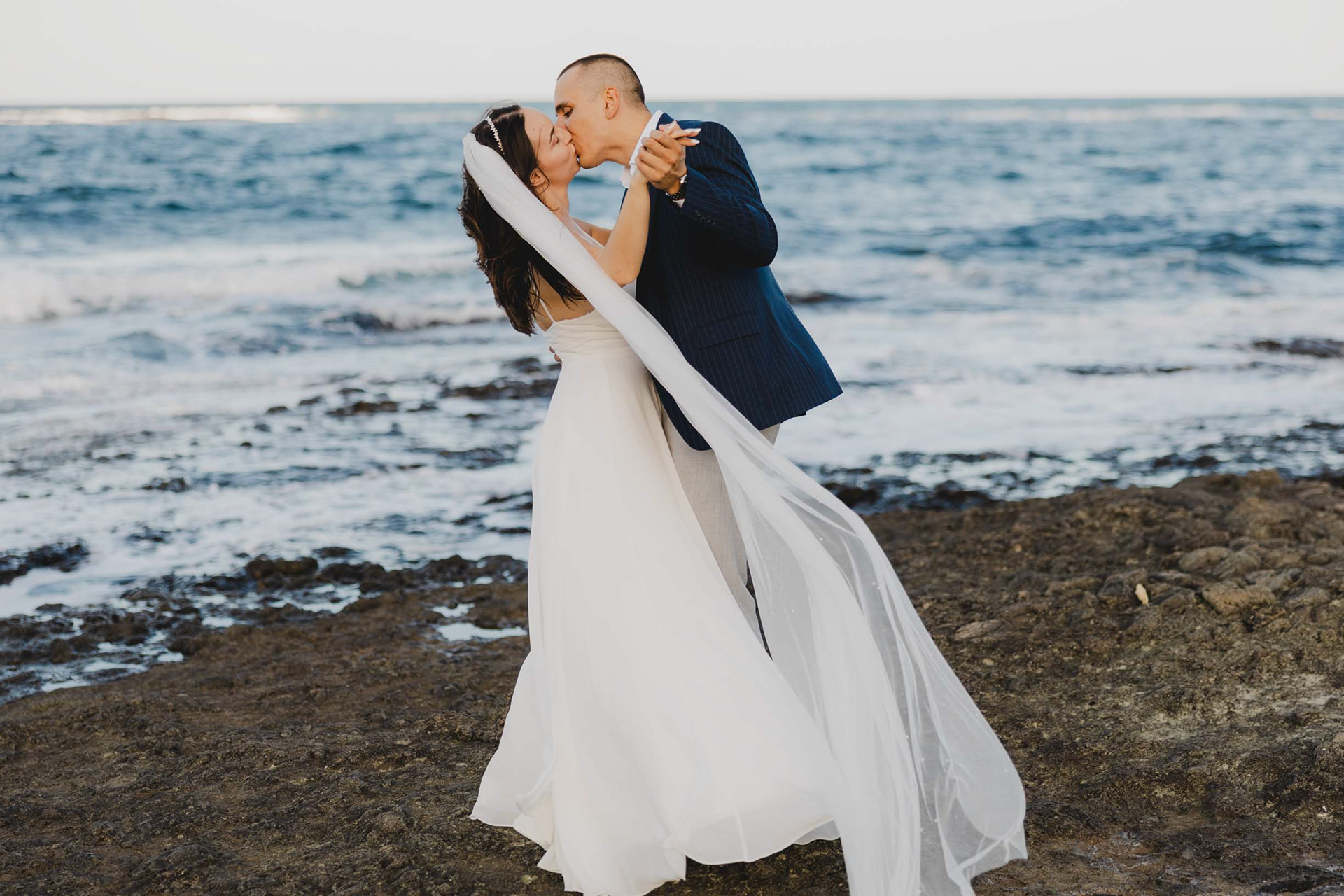 Вятър и море на скалите във Василико – един от най-красивите моменти от сватбената сесия в Царево