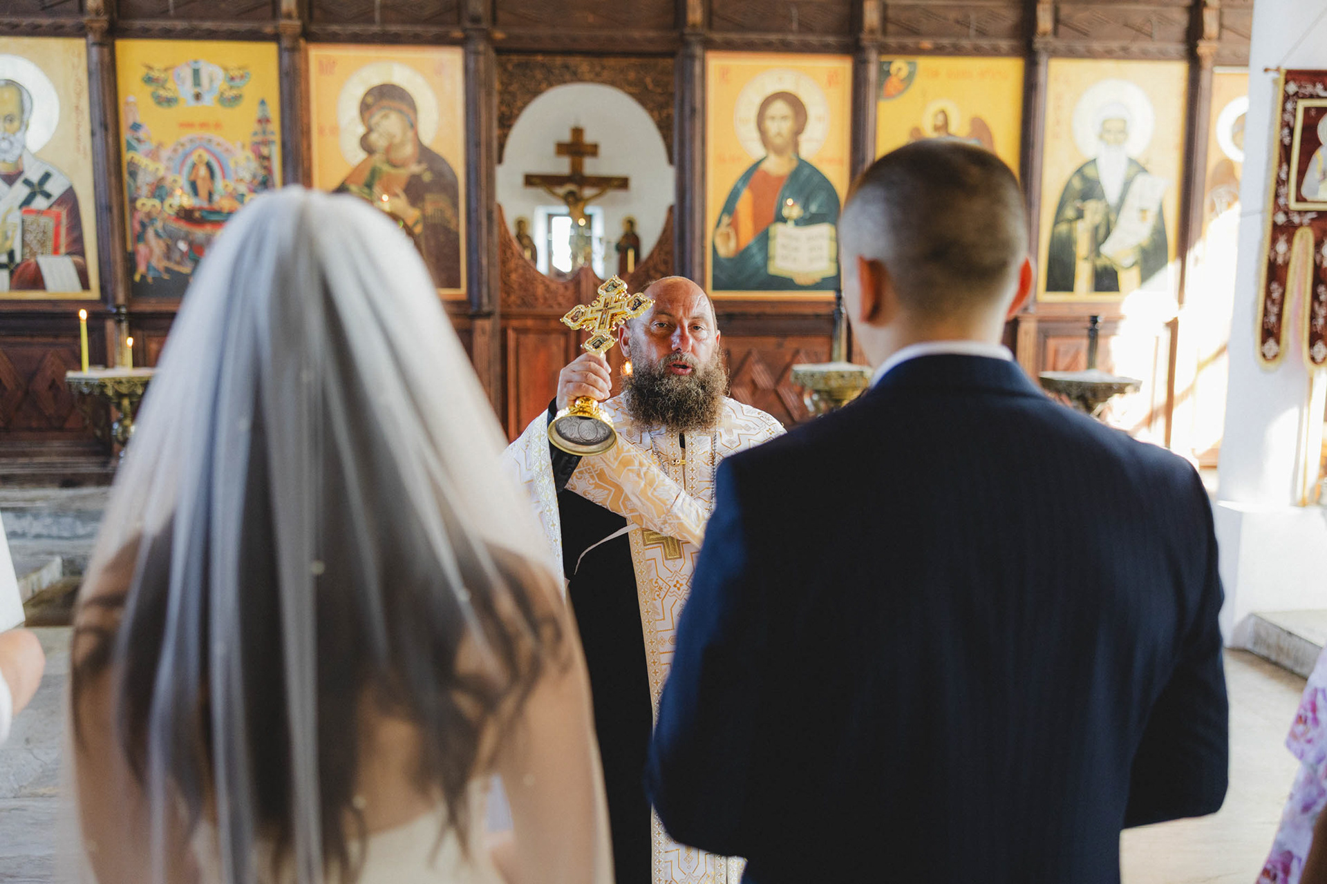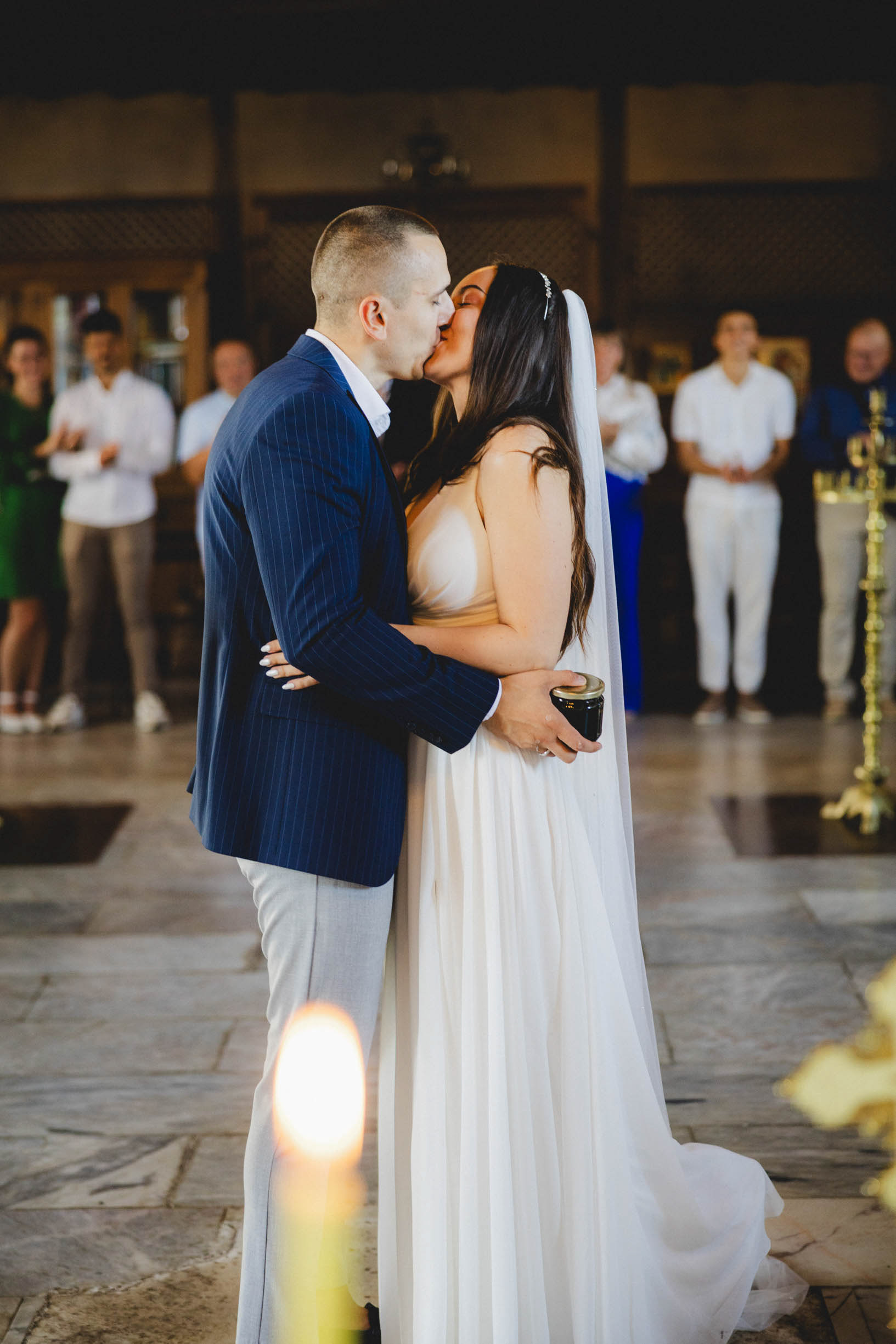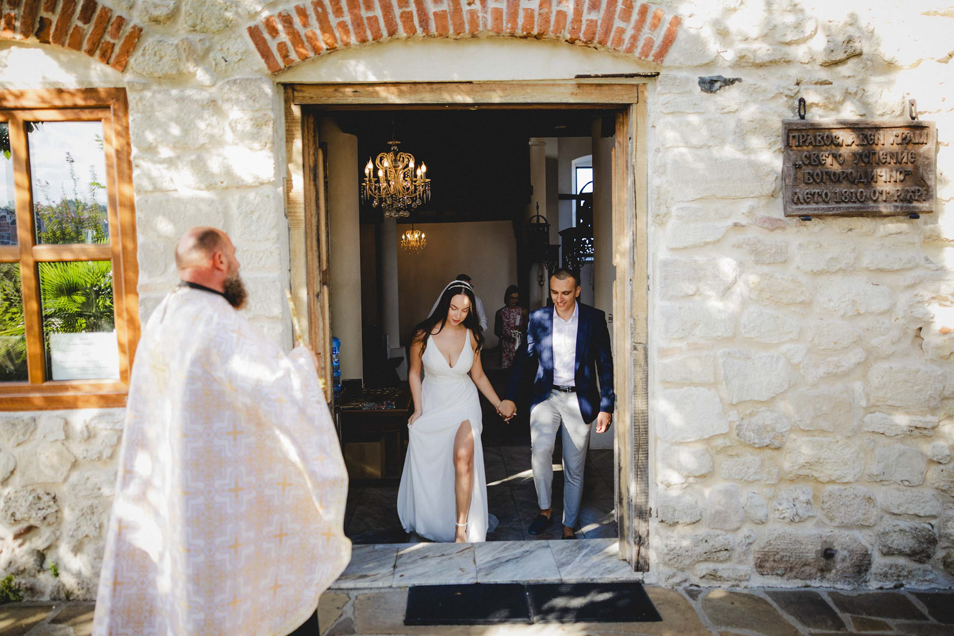 Венчавката в старата църква на Царево носи особен дух. Разположена на скалистия нос, църквата 'Св. Успение Богородично' е притихнал свидетел на техните обещания, докато морето разказва своята история на заден фон.