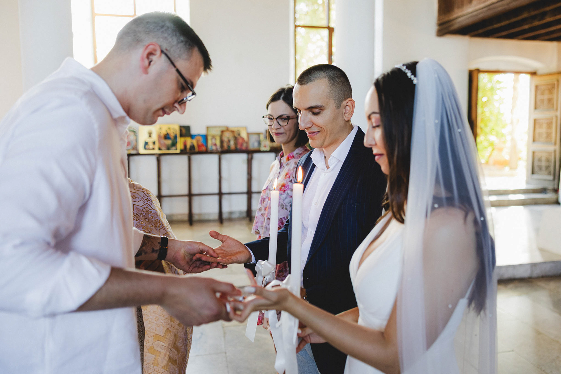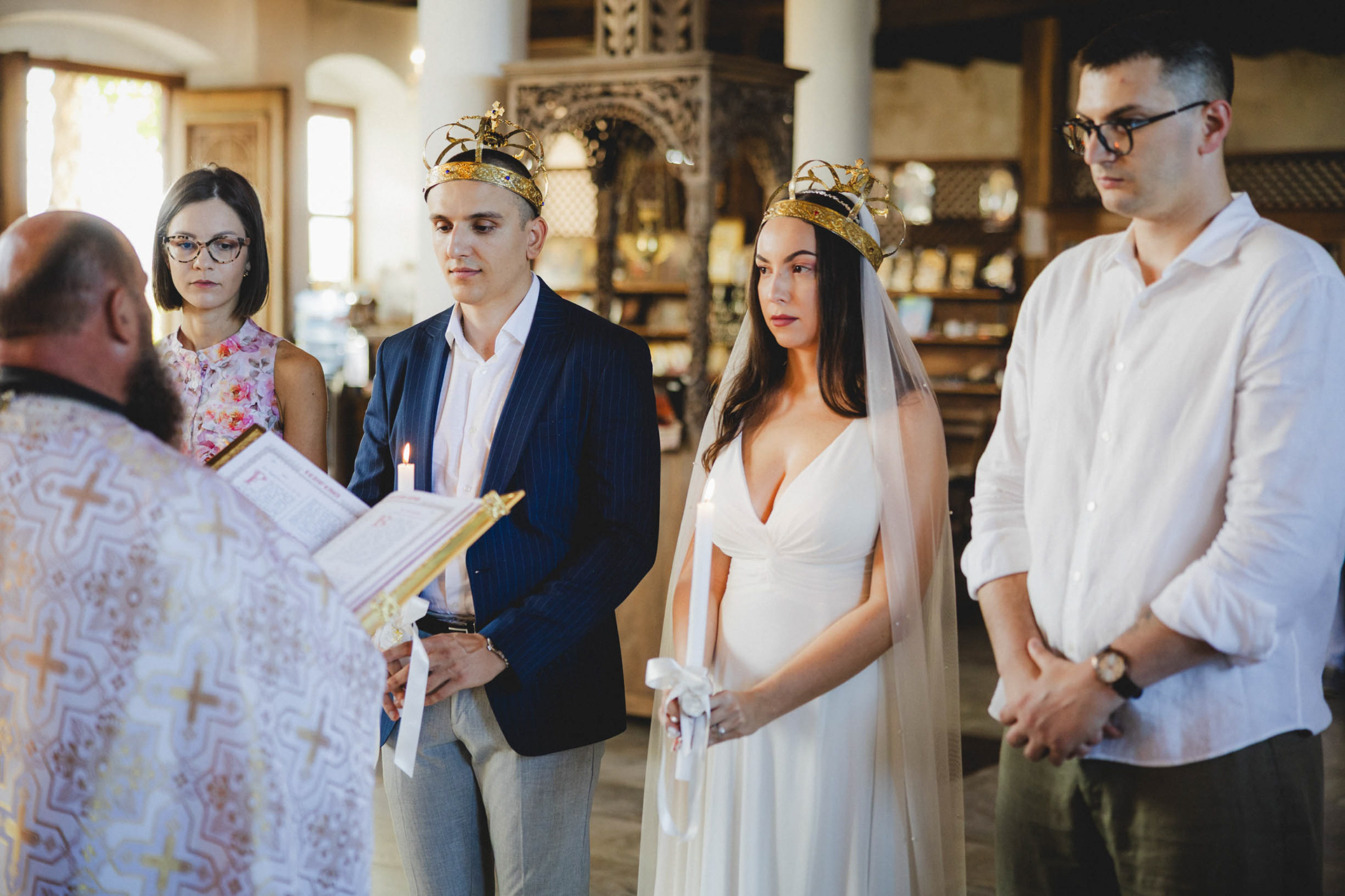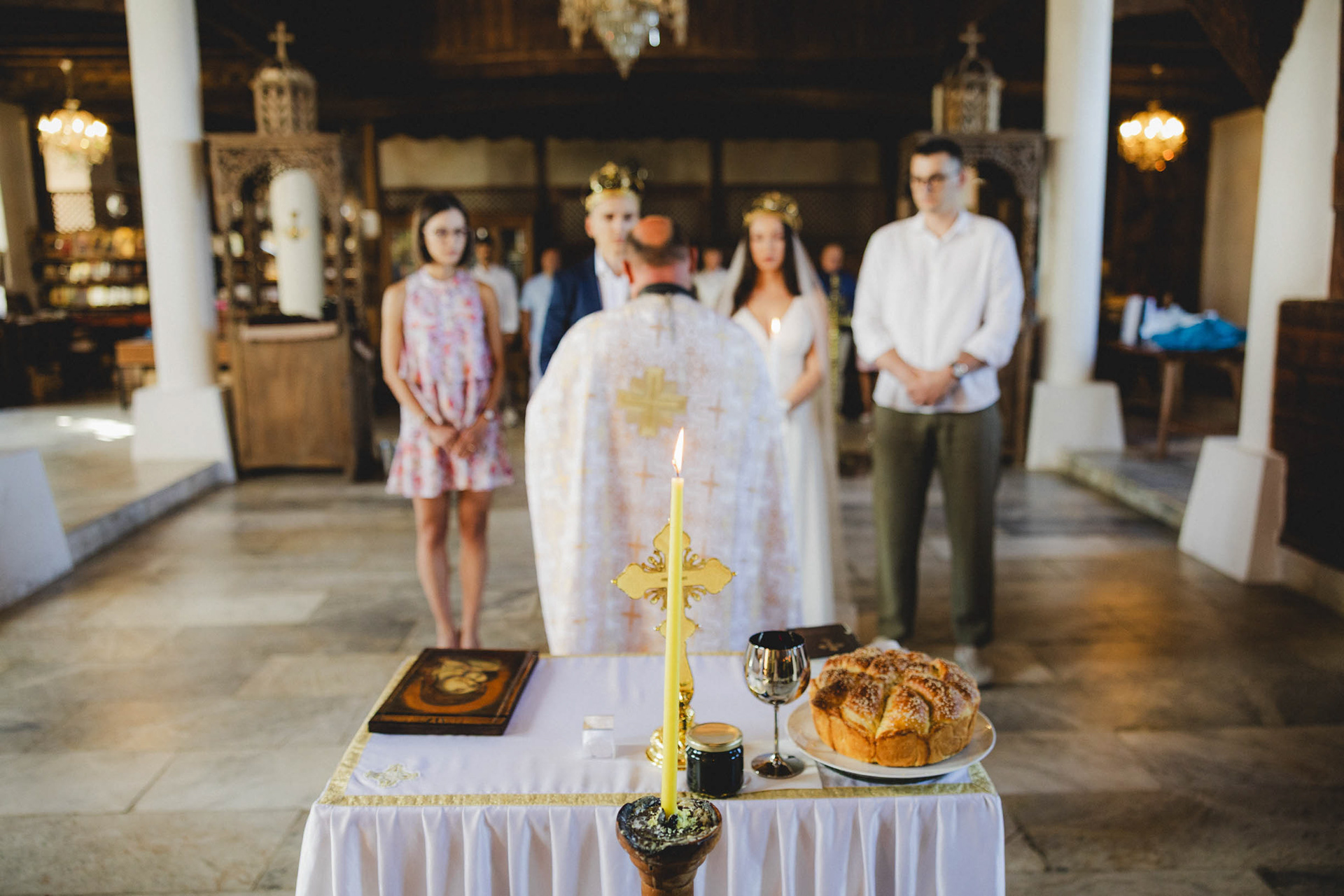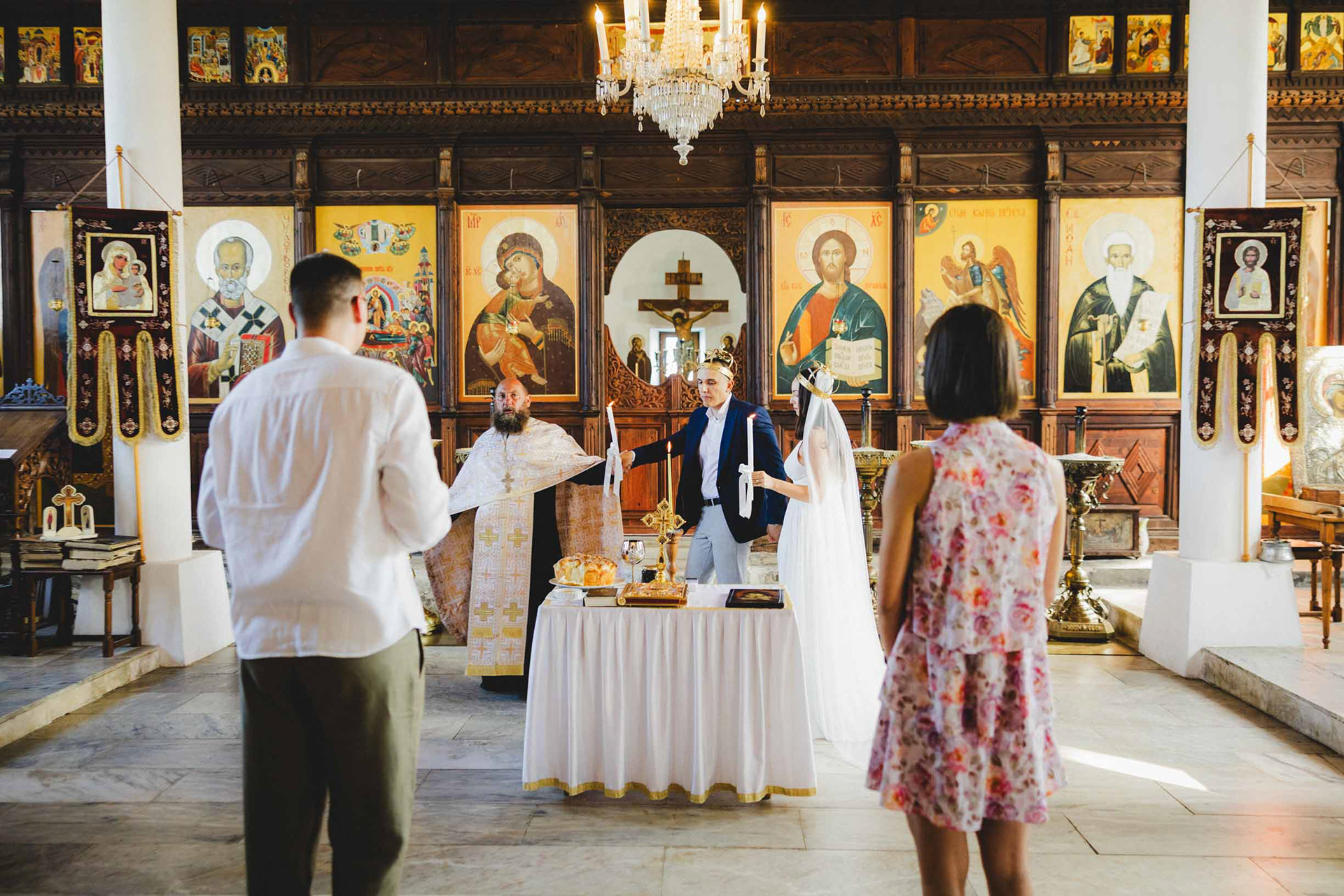 Венчавката в старата църква на Царево носи особен дух. Разположена на скалистия нос, църквата 'Св. Успение Богородично' е притихнал свидетел на техните обещания, докато морето разказва своята история на заден фон.