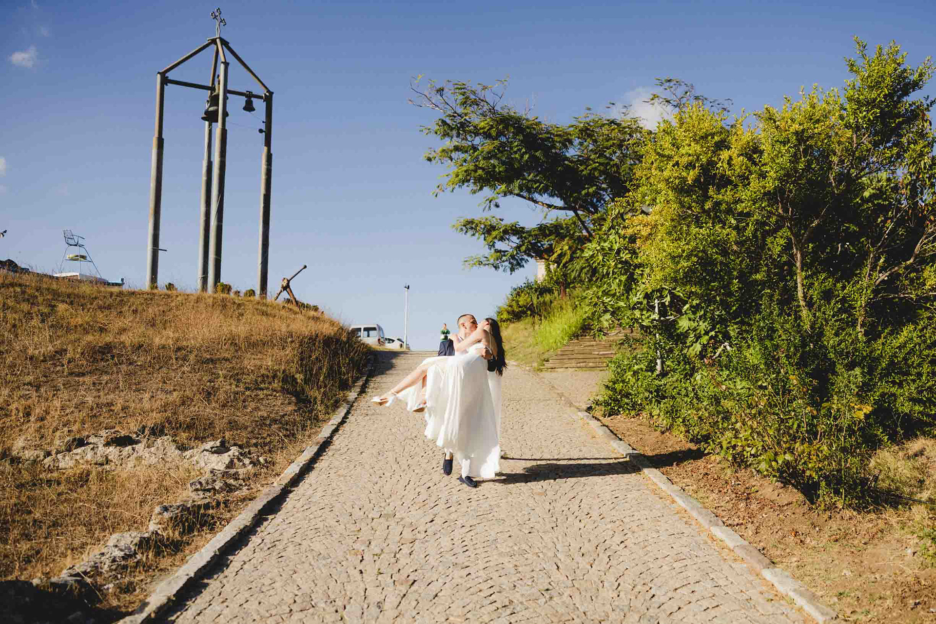 Сватбен камбанен звън развълнува чайките наоколо, след венчавката на Янимир и Стефи
